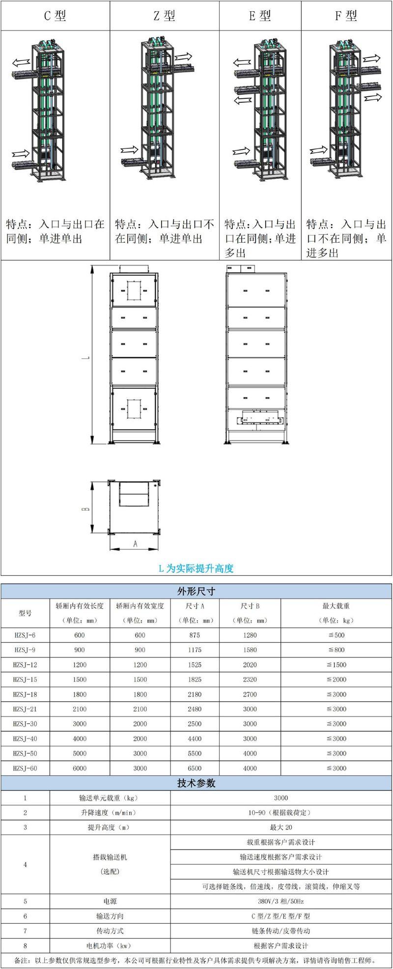 該設(shè)備結(jié)構(gòu)合理、運(yùn)行平穩(wěn)、高速靜音、安全可靠,承載量可達(dá)3噸,提升高度可達(dá)20米,安裝維護(hù)方便實(shí)用,是替代貨物電梯理想的貨物輸送設(shè)備。標(biāo)準(zhǔn)化的橋箱接口可方便選擇各種包裝箱、托盤、卡板等靈活多樣的工件形式。該設(shè)備配置多種防墜、互鎖等安全裝置,從而保證人身貨物安全,可廣泛應(yīng)用于汽車、食品、煙草、郵政、化工、輕工、機(jī)械、電子、食品、倉儲(chǔ)物流等自動(dòng)化生產(chǎn)行業(yè)。